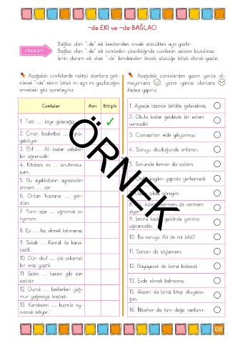 DİKKAT! Bağlaç olan “-de” eki cümleden çıkarıldığında cümlenin anlamı bozulmaz.