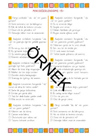 5 Aşağıdaki cümlelerin hangisinde “-de, 10 Hangi cümledeki “da, de” nin yazımı