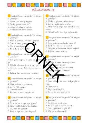lış yazılmıştır? 8 Aşağıdakilerden hangisinde “-ki” eki yan-