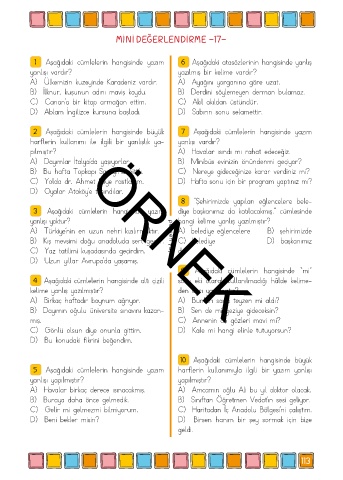 2 Aşağıdaki cümlelerin hangisinde büyük 7 Aşağıdaki cümlelerin hangisinde yazım