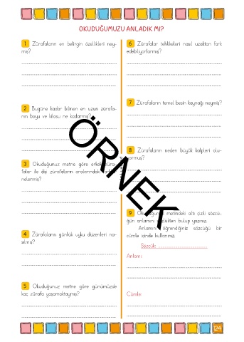 4 Zürafaların günlük uyku düzenleri na- cümle içinde kullanınız.