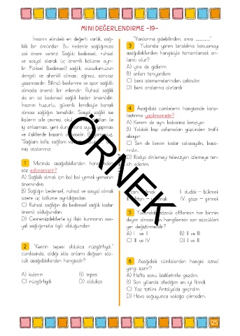 lır. Fiziksel (bedensel) sağlık; vücudumuzun A) yine de giderim