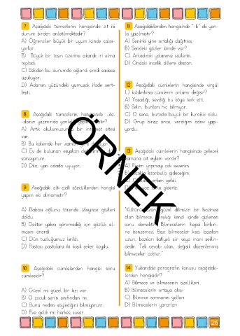 7 Aşağıdaki tümcelerin hangisinde zıt iki 11 Aşağıdakilerden hangisinde “-ki” eki yan-