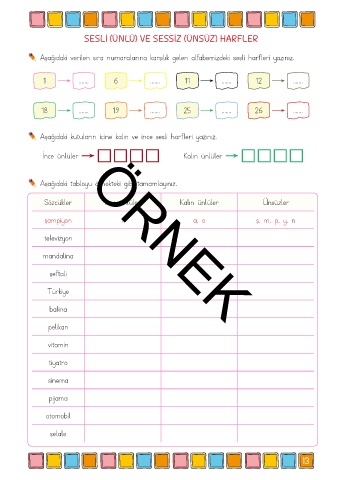 Aşağıdaki kutuların içine kalın ve ince sesli harfleri yazınız.