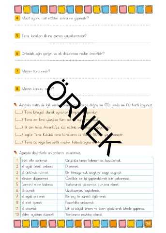Aşağıda deyimlerle anlamlarını eşleştiriniz.