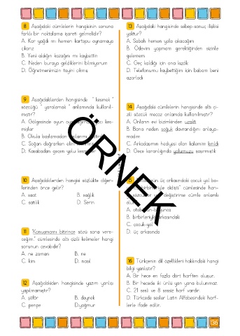 8 Aşağıdaki cümlelerin hangisinin sonuna 13 Aşağıdaki hangisinde sebep-sonuç ilişkisi
