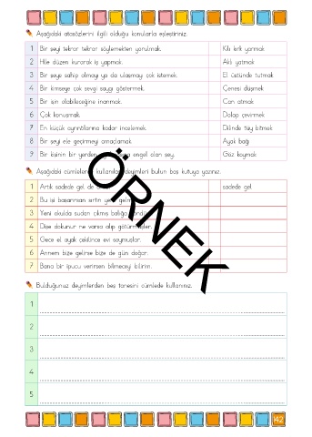 Aşağıdaki cümlelerde kullanılan deyimleri bulun boş kutuya yazınız.