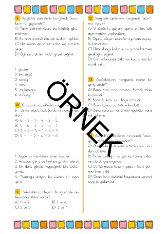 9 Aşağıdaki cümlelerin hangisinde “karşı- 12 Aşağıdaki cümlelerin hangisinde “abart-