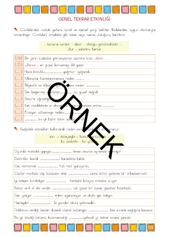 tamamlayın. Cümleleri örnekteki gibi öznel veya nesnel olduğunu belirtiniz.