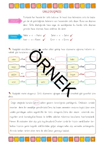 Aşağıdaki metni okuyunuz. Ünlü düşmesine uğrayan sözcükleri örnekteki gibi yuvarlak içine
