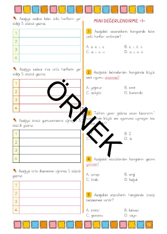 aldığı 5 sözcük yazınız. 2 Aşağıdaki kelimelerden hangisinde büyük