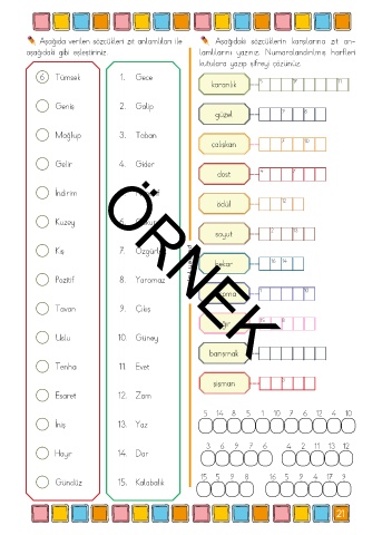 Aşağıda verilen sözcükleri zıt anlamlıları ile Aşağıdaki sözcüklerin karşılarına zıt an-