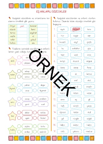 Aşağıdaki sözcüklerin eş anlamlılarını kar- Aşağıdaki sözcüklerden eş anlamlı olanları