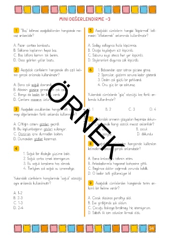 1 ’“Boş” kelimesi aşağıdakilerden hangisinde me- 5 Aşağıdaki cümlelerin hangisi “köpürmek” keli-