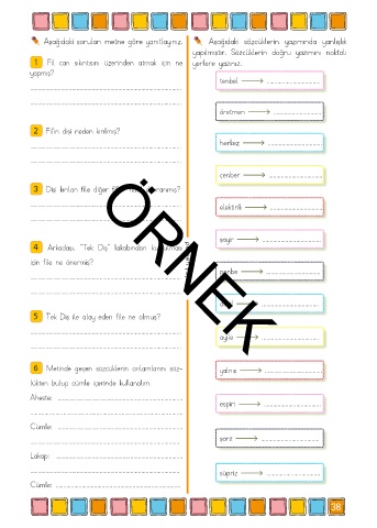 6 Metinde geçen sözcüklerin anlamlarını söz- yalnış .....................................