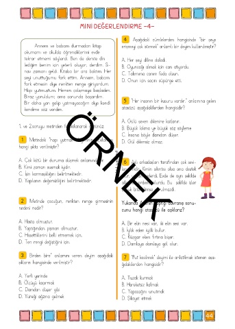 4 Aşağıdaki cümlelerden hangisinde “bir şeye