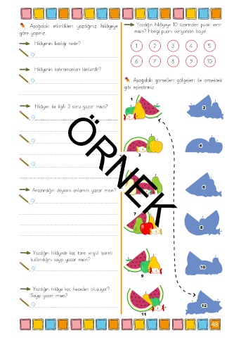 Aşağıdaki etkinlikleri yazdığınız hikâyeye Yazdığın hikâyeye 10 üzerinden puan verir