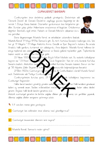 Cumhuriyetimizin kuruluş günü, 29 Ekim’dir. Bu günde kutladığımız bayramımız ise;