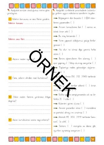 yanıtlayınız. ğu yerlere uygun noktalama işaretlerini koyalım.
