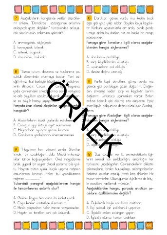 7 Aşağıdakilerin hangisinde verilen sözcükle- 10 Doruklar, güneş vurdu mu keskin bıçak