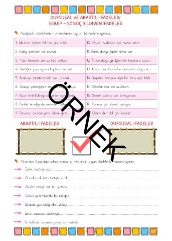 Alıştırma Aşağıdaki sebep-sonuç cümlelerini uygun ifadelerle tamamlayalım.