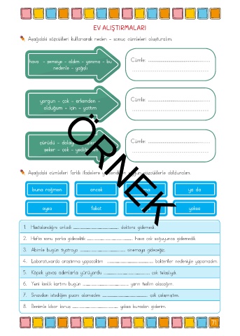 Aşağıdaki cümleleri farklı ifadelere yönlendiren uygun sözcüklerle dolduralım.