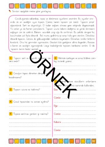 5 Topaca sarılması gereken ip nasılmış? Cümle: ................................................................................