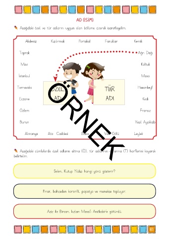 Aşağıdaki cümlelerde özel adların altına (Ö), tür adlarının altlarına (T) harflerini koyarak
