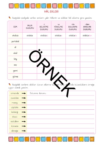 Aşağıdaki isimlerin aldıkları durum eklerine bakarak hangi durumda bulunduklarını örneğe