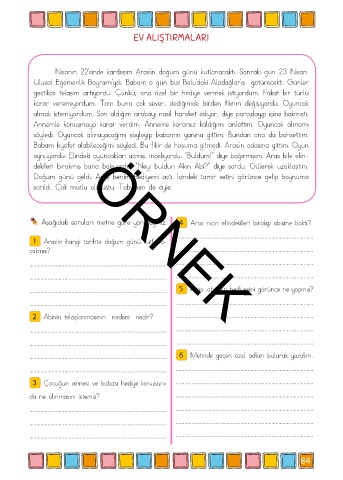 3 Çocuğun annesi ve babası hediye konusun- ..................................................................................................