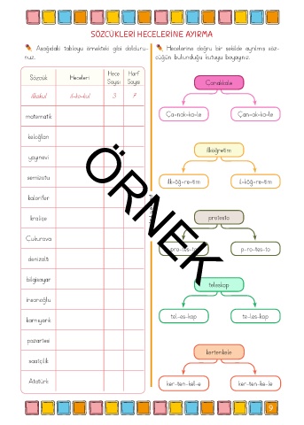 Aşağıdaki tabloyu örnekteki gibi dolduru- Hecelerine doğru bir şekilde ayrılmış söz-