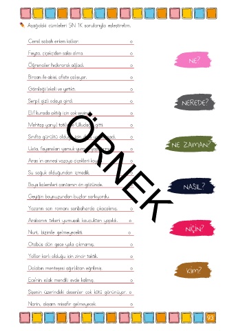 Aşağıdaki cümleleri 5N 1K sorularıyla eşleştirelim.