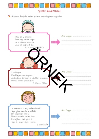 Alıştırma Aşağıda verilen şiirlerin ana duygusunu yazalım.