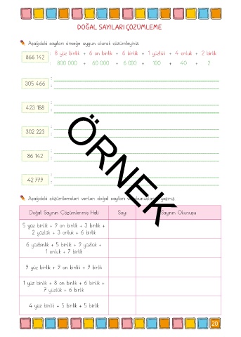 Aşağıdaki sayıları örneğe uygun olarak çözümleyiniz.