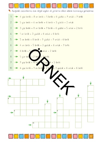 Aşağıdaki çözümlenmiş olan doğal sayıları ok yönlerine dikkat ederek bulmacaya yerleştiriniz.