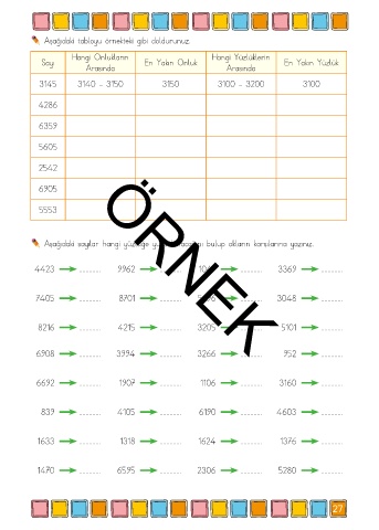 Aşağıdaki sayılar hangi yüzlüğe yuvarlanacağını bulup okların karşılarına yazınız.