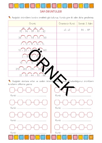 Aşağıdaki örüntülerin kuralını örnekteki gibi bulunuz. Kurala göre iki adım daha genişletiniz.