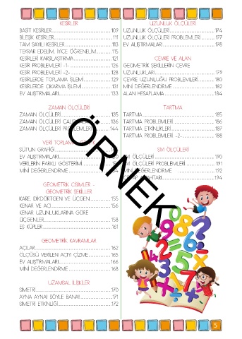 KESİRLERDE TOPLAMA İŞLEMİ ............................129 ÇEVRE UZUNLUĞU PROBLEMLERİ ................180