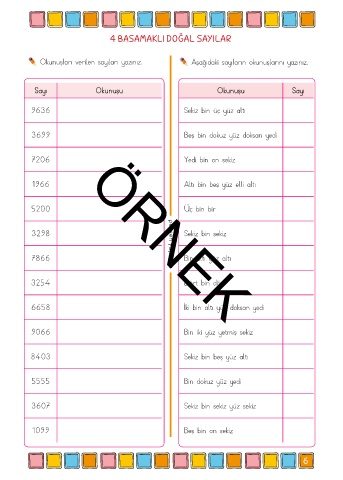 Okunuşları verilen sayıları yazınız. Aşağıdaki sayıların okunuşlarını yazınız.