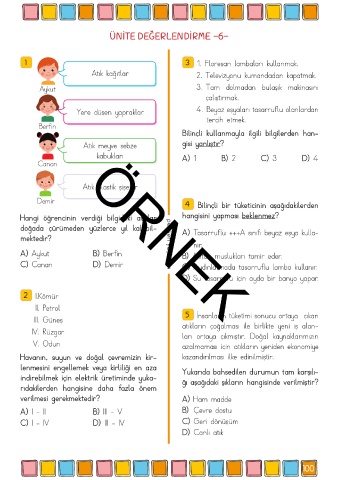 C) Canan D) Demir C) Aydınlatmada tasarruflu lamba kullanır.