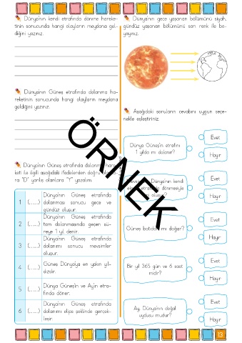 tinin sonucunda hangi olayların meydana gel- gündüz yaşanan bölümünü sarı renk ile bo-