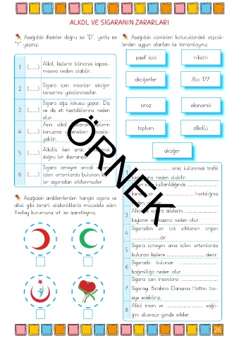 Yeşilay kurumuna ait ise işaretleyiniz. Alkol ve sigara ailelerin ..............................