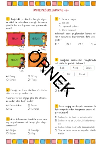 1 Aşağıdaki çocuklardan hangisi sigara 4 1. Sebze - meyve
