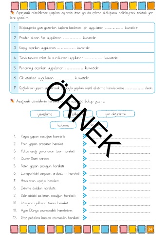 Aşağıdaki cümlelerde yapılan eylemin itme ya da çekme olduğunu belirleyerek noktalı yer-
