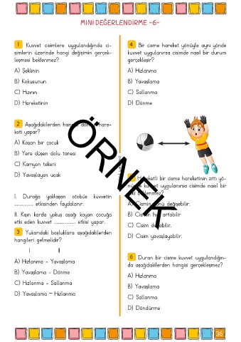 1 Kuvvet cisimlere uygulandığında ci- 4 Bir cisme hareket yönüyle aynı yönde