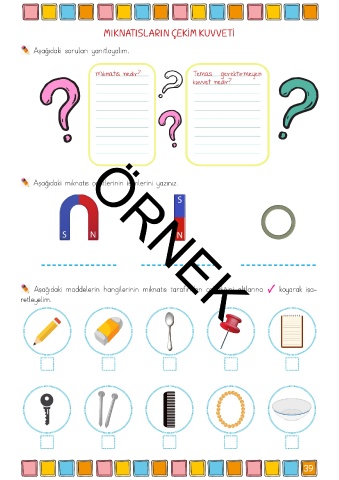 Aşağıdaki maddelerin hangilerinin mıknatıs tarafından çekildiğini altlarına koyarak işa-