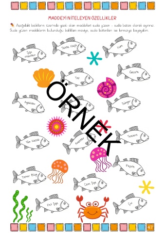 Suda yüzen maddelerin bulunduğu balıkları maviye, suda batanları ise kırmızıya boyayalım.