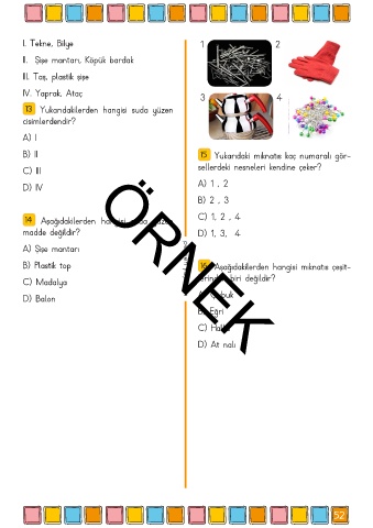 14 Aşağıdakilerden hangisi suda yüzen C) 1, 2 , 4