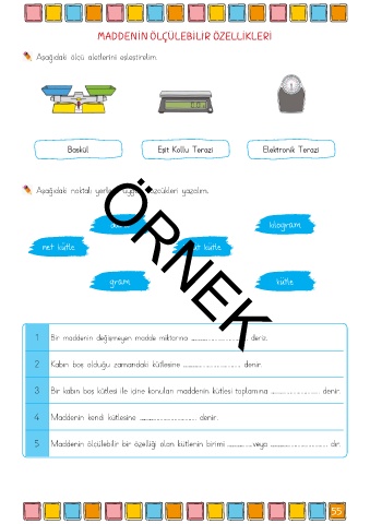 3 Bir kabın boş kütlesi ile içine konulan maddenin kütlesi toplamına ……….......................... denir.