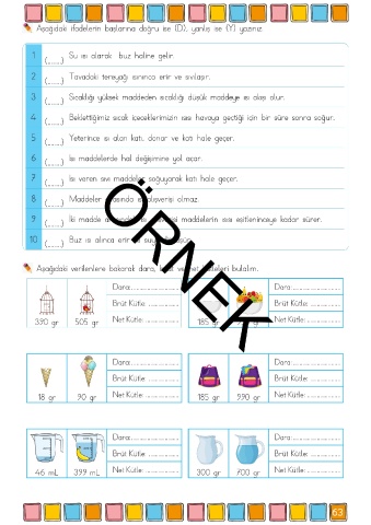 10 (........) Buz ısı alınca erir ve suya dönüşür.